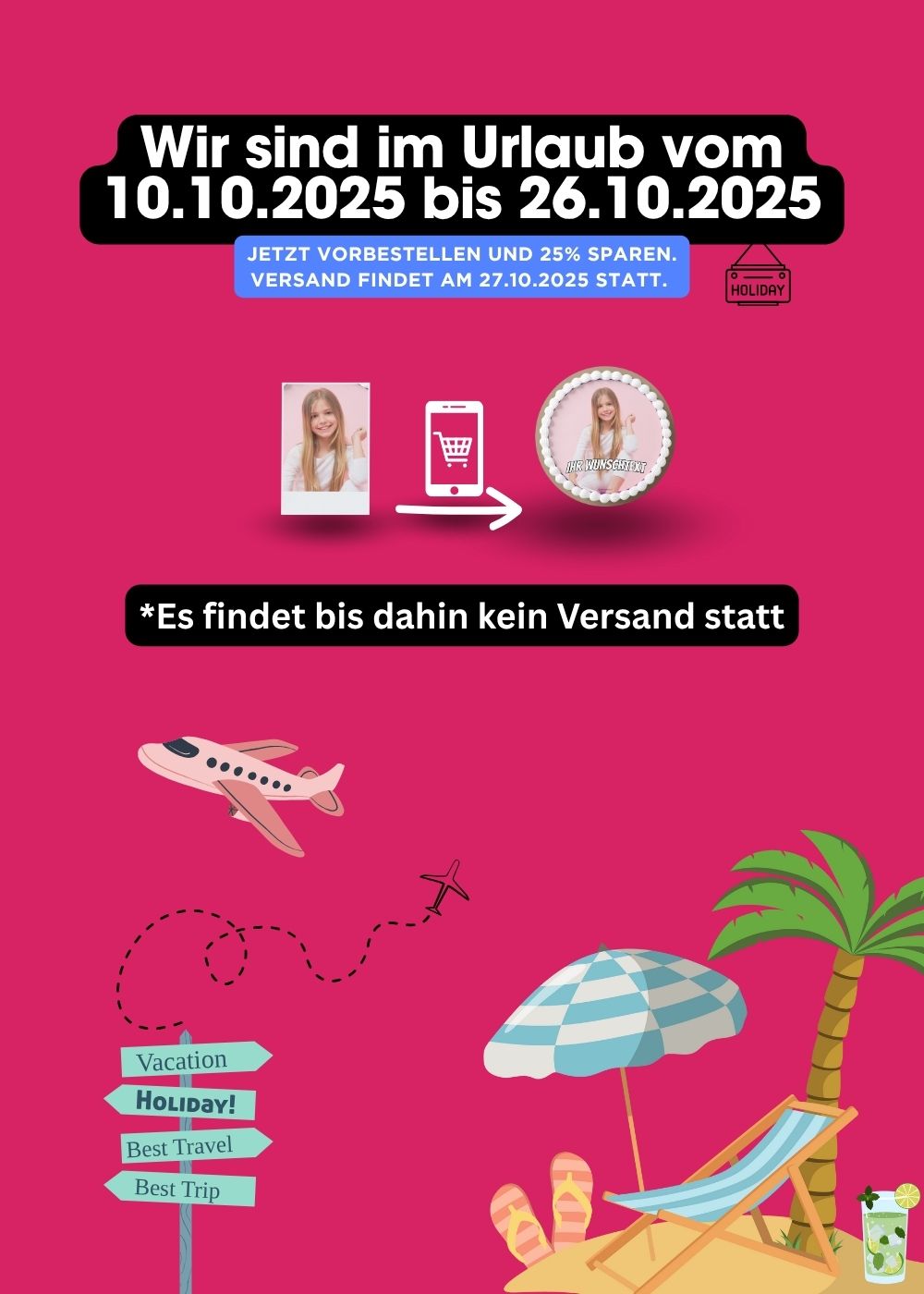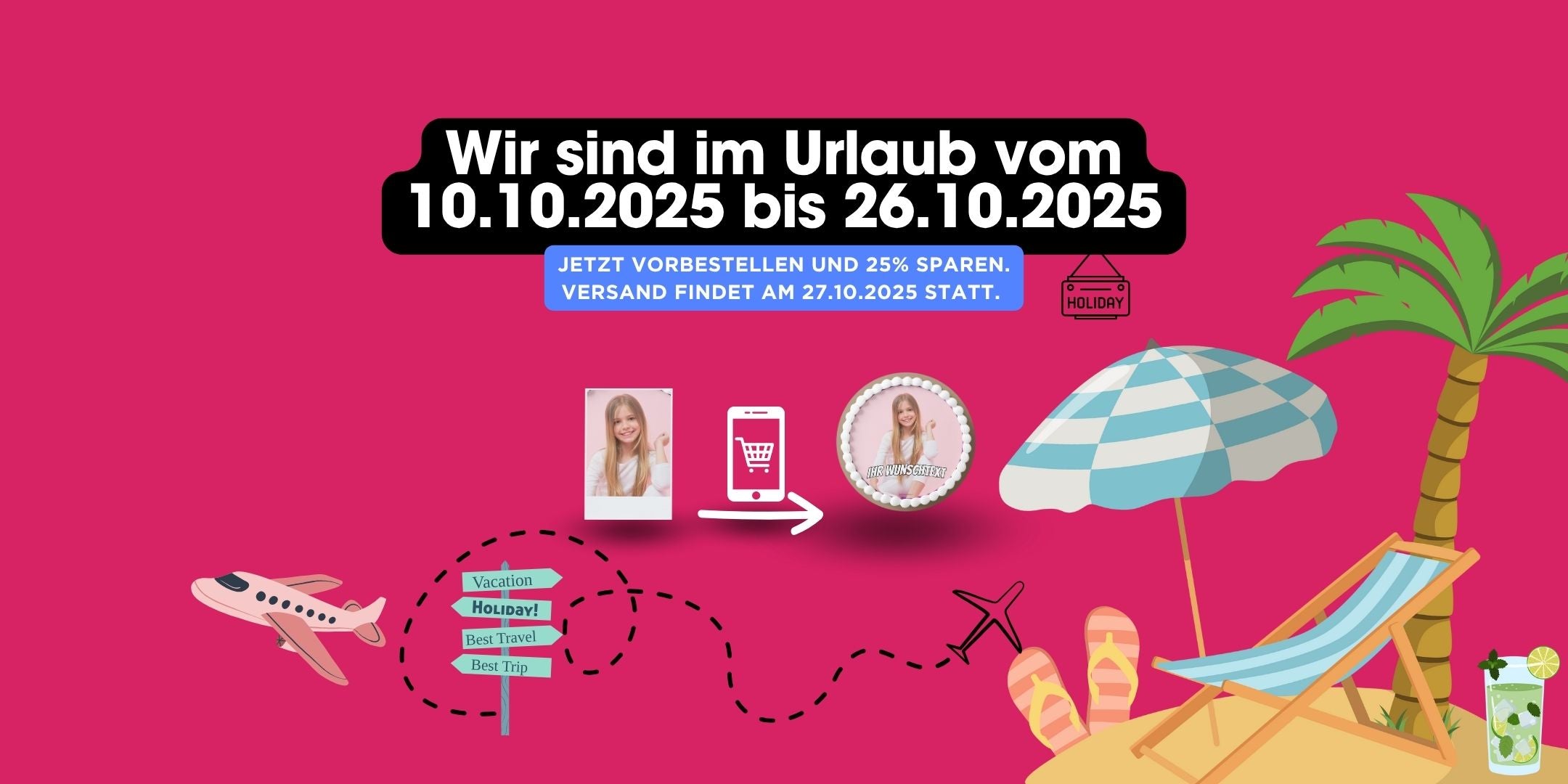 Da die Tortenaufleger individuell bedruckt werden, ist eine Änderung oder Stornierung nach der Produktion leider nicht mehr möglich. Bitte prüfen Sie Ihr Design vor dem Absenden der Bestellung sorgfältig.