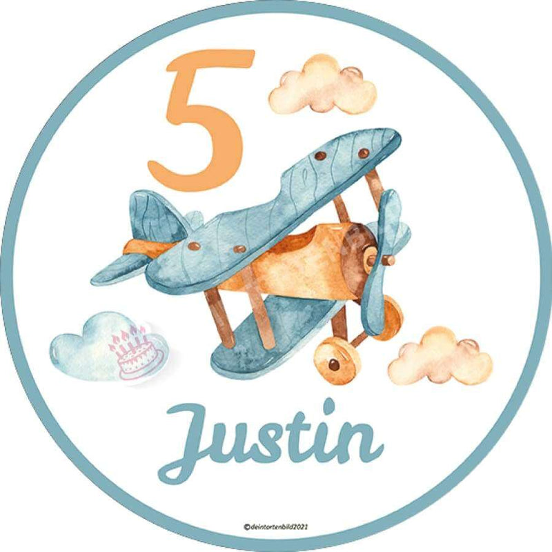 Motiv: Altes Flugzeug - Name und Zahl anpassbar - Deintortenbild.de Tortenaufleger aus Esspapier: Oblatenpapier, Zuckerpapier, Fondantpapier
