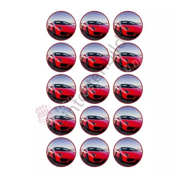 Muffin topper car red in 5cm circle