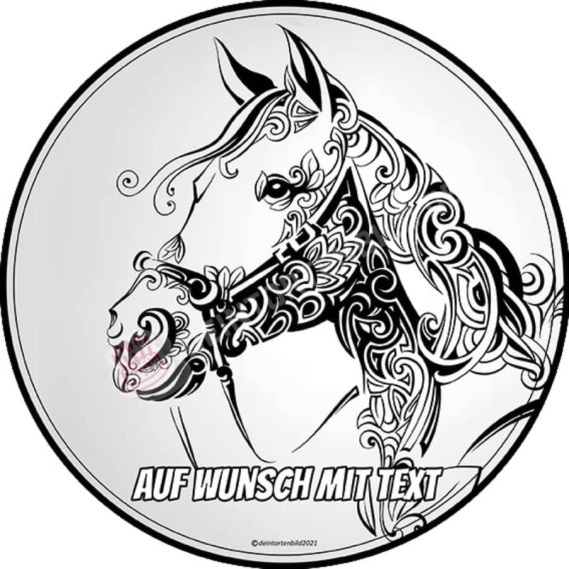 Cake topper Elegant horse with floral pattern in 20cm circle