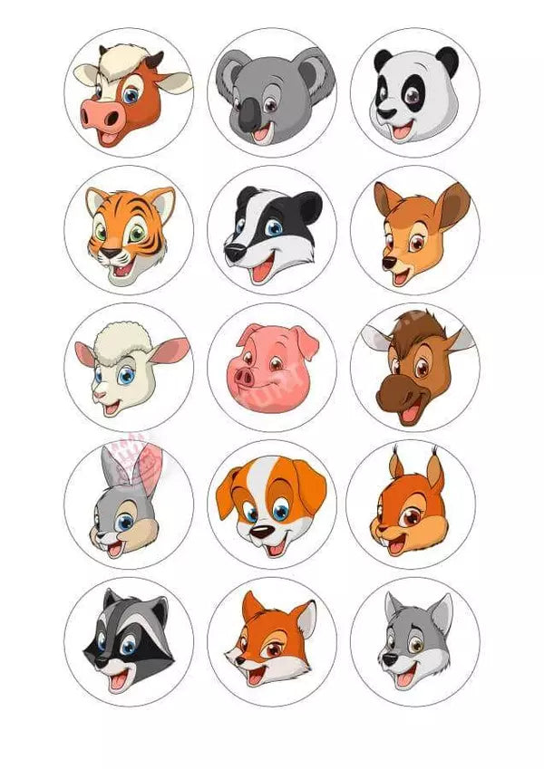 Muffin toppers cartoon animal heads in 4-5cm circle