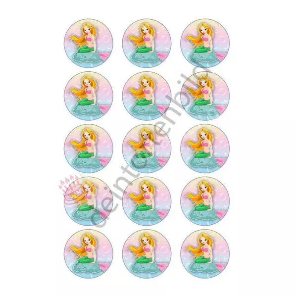 Muffin topper mermaid stone in 5cm circle