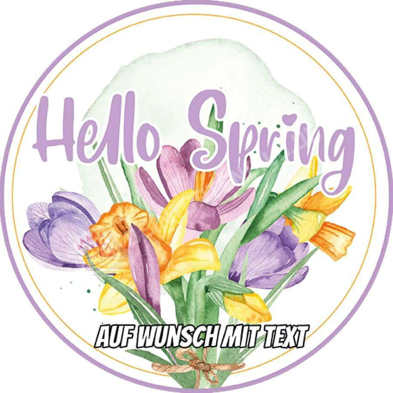 Cake topper Hello Spring - beginning of spring bouquet in 20cm circle