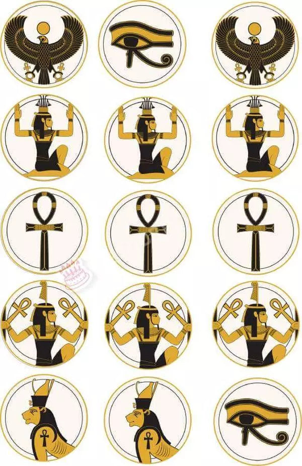 Muffin topper Egyptian symbols in 4-5cm circle