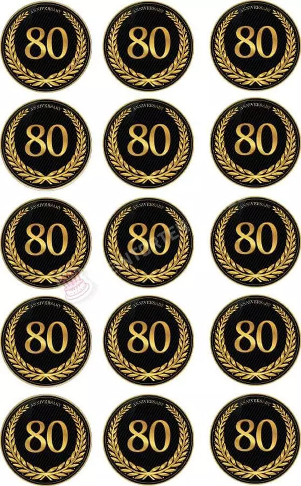 Muffin topper anniversary 80 years in 4-5cm circle