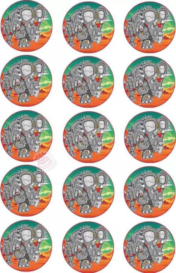Muffinaufleger Motiv: Roboter Triceratops - Deintortenbild.de Tortenaufleger aus Esspapier: Oblatenpapier / 15x5cm, Oblatenpapier / 24x4cm, Zuckerpapier / 15x5cm, Zuckerpapier / 24x4cm, Fondantpapier / 15x5cm, Fondantpapier / 24x4cm