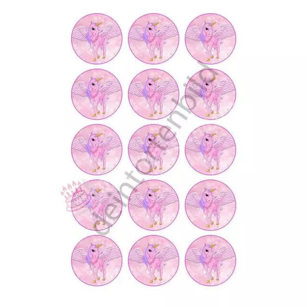 Muffin topper unicorn pink in 5cm circle