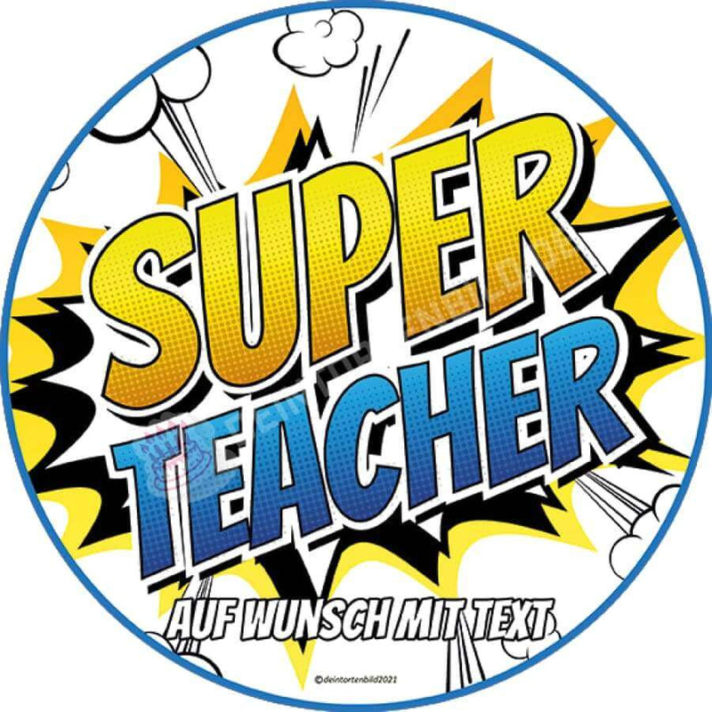 Tortenaufleger Cartoon Schriftzug "Super Teacher" in 20cm Kreis