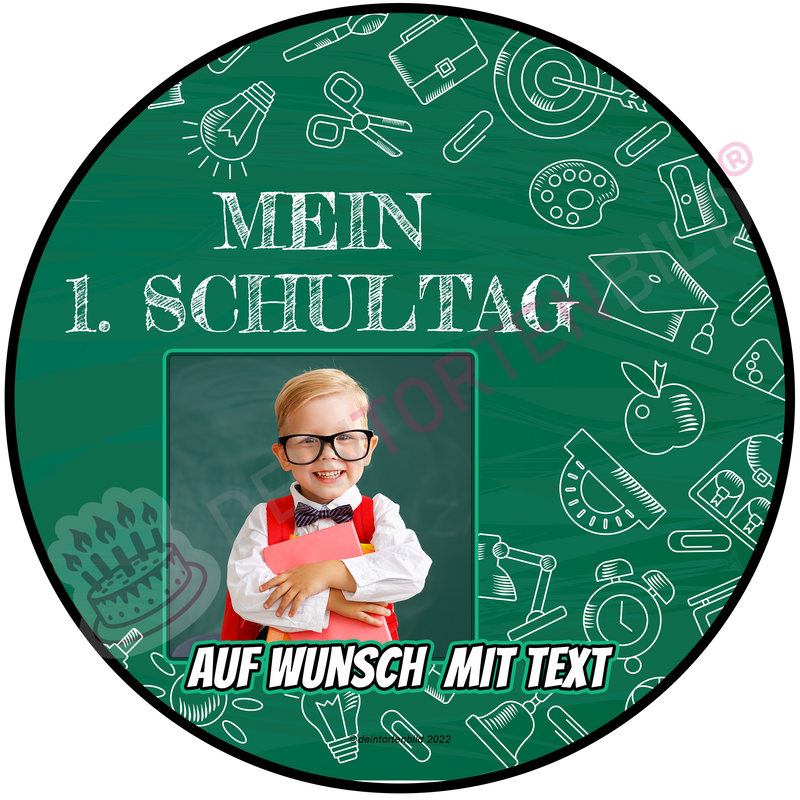 Tortenaufleger Tortenbild Motiv: Zum Schulanfang mit Wunschfoto