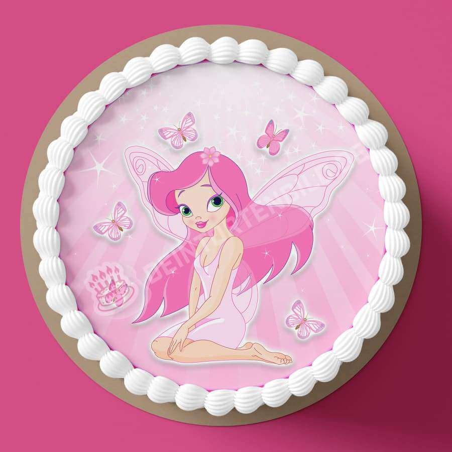Tortenaufleger Geburtstag 'Pinkhaarige Fee mit Schmetterlingen'
